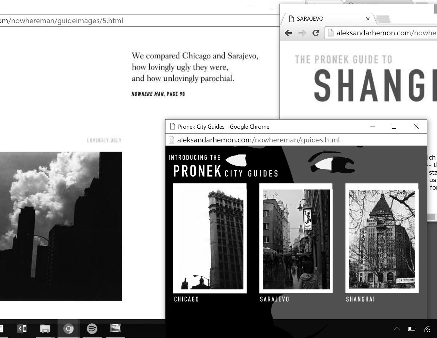 This article brings spatial theory, diasporic culture, and media studies together in cross-platform readings of the Bosnian-American author Aleksandar Hemon. It argues that Hemon’s novels and websites render diasporic space in terms of “time–geography,” which represents places as loci for multiple histories of migration. Diasporic time–geography produces several perspectives on shared space; such perspectives are further compounded when Hemon’s novels Nowhere Man (2004) and The Lazarus Project (2008) are read comparatively with their websites. However, I argue that Hemon’s diversiform approach to space assumes coherence when read as a critique. In particular, his use of text, image, and interactive web design to represent the spaces of Chicago, Sarajevo, Lviv, and more contests the spatial abstraction of the nation-state described by Henri Lefebvre. Against this abstraction, Hemon’s work understands diasporic space as a concrete social production inflected by past, present, and future population movements.