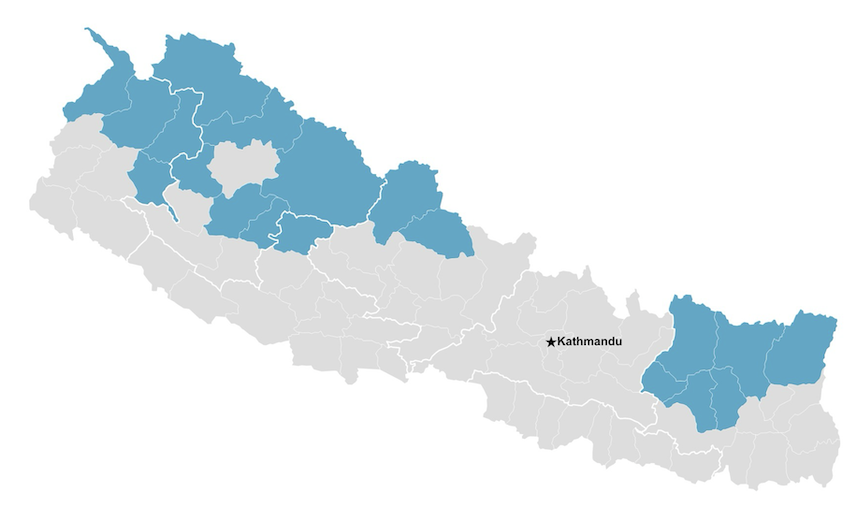 Figure 1. Nineteen Districts of Nepal covered by the President’s Program for the Upliftment of Women in 2024