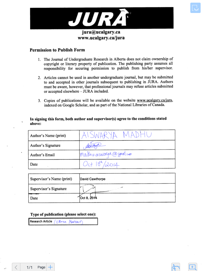 Authors retain all rights to their research work. Articles may be submitted to and accepted in other journals subsequent to publishing in JURA. Our only condition is that articles cannot be used in another undergraduate journal. Authors must be aware, however, that professional journals may refuse articles submitted or accepted elsewhere—JURA included.