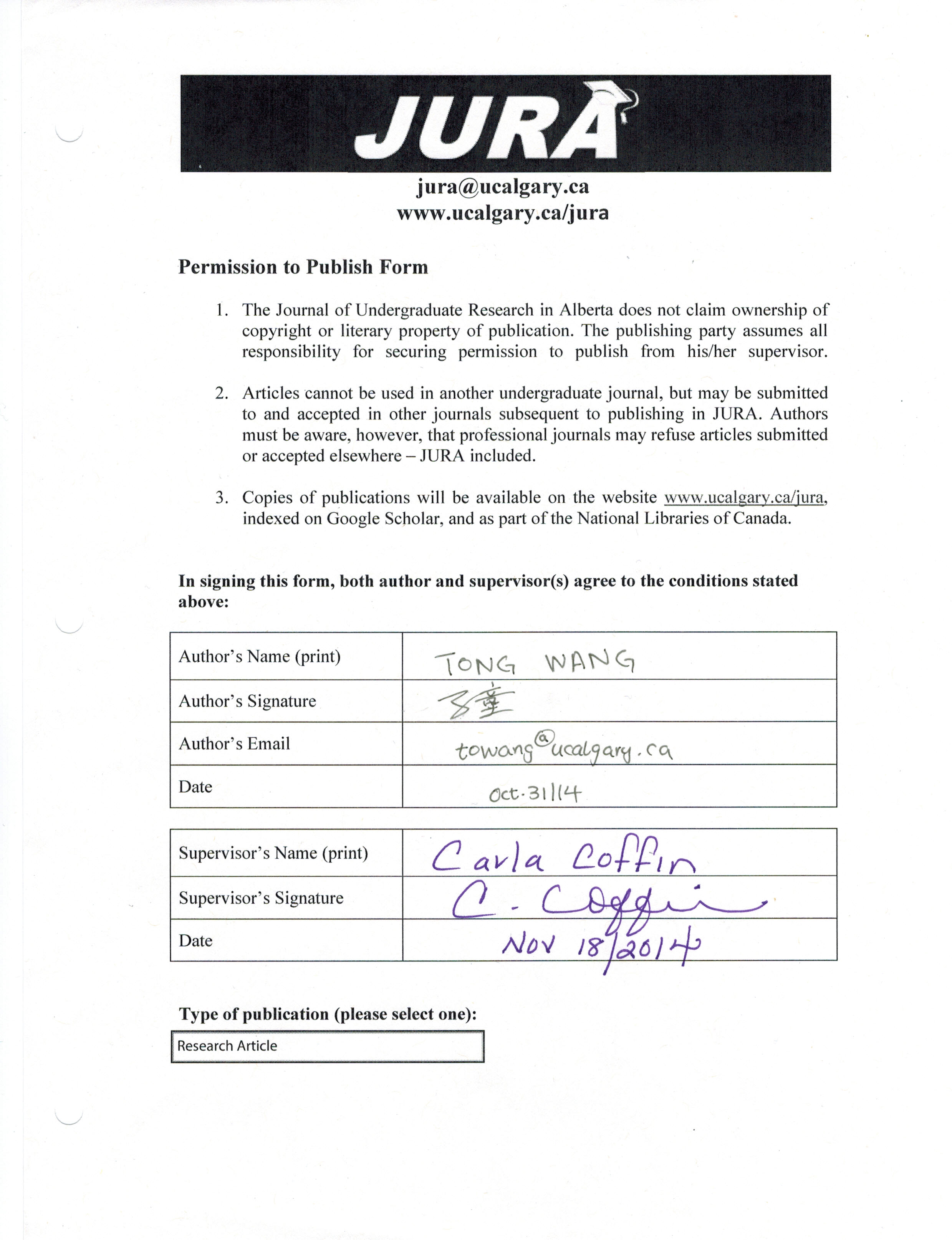 Authors retain all rights to their research work. Articles may be submitted to and accepted in other journals subsequent to publishing in JURA. Our only condition is that articles cannot be used in another undergraduate journal. Authors must be aware, however, that professional journals may refuse articles submitted or accepted elsewhere—JURA included.