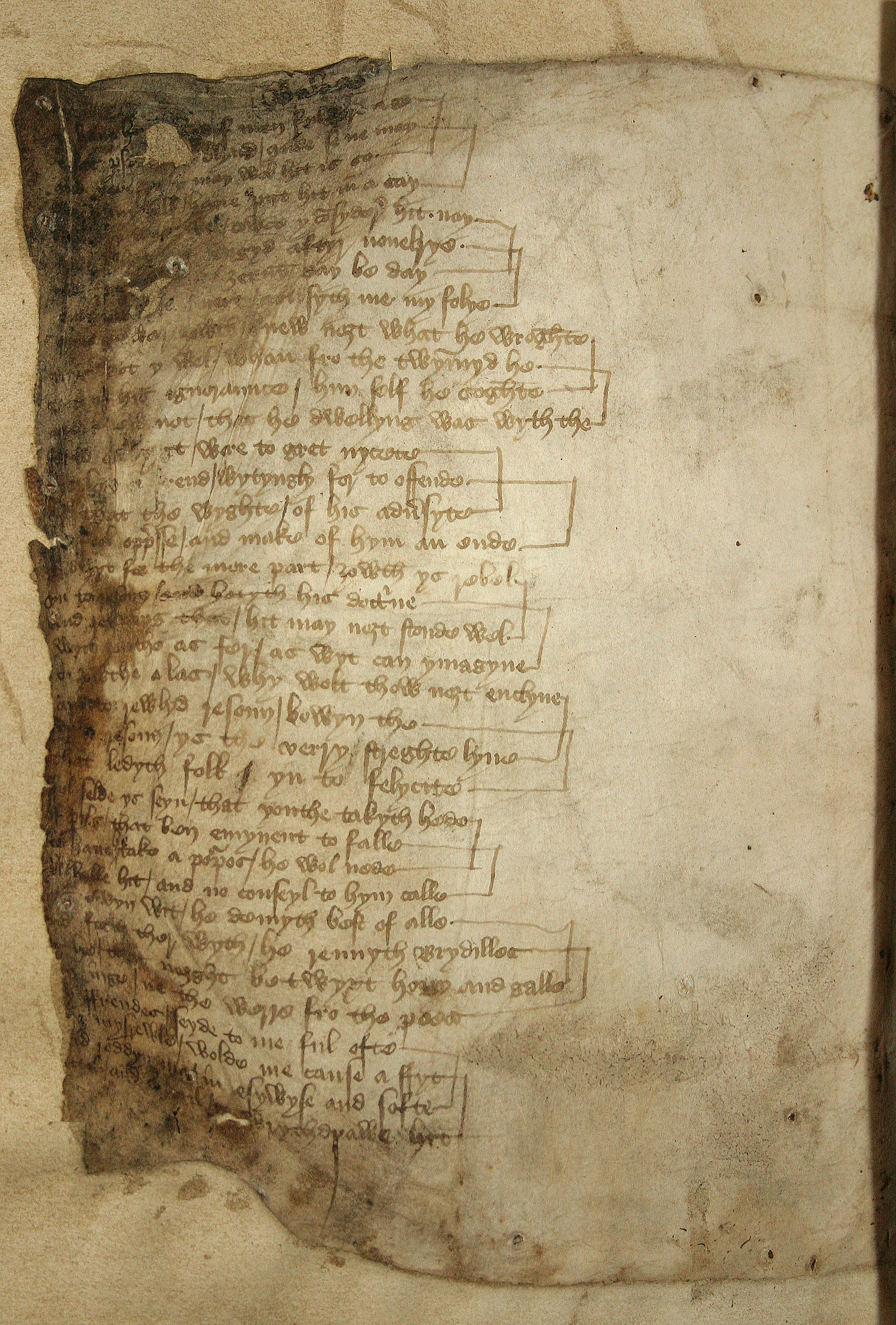 At some time between 1422 and 1426, Thomas Hoccleve copied nineteen of his poems into a manuscript now known as San Marino, Huntington Library, MS HM 111. Hoccleve’s autograph manuscript is the most authoritative copy of many of these poems, including a poem of fifty-six stanzas known as La Male Regle. The copy of this poem that appears in an opening at the end of Canterbury Cathedral Archives, Register O does not challenge the authoritative text. Nonetheless, it merits an edition that will allow students to consider it in its own right: the Canterbury copy does not simply present a fragment of the poem but a careful selection of nine stanzas designed, in the words of Marian Trudgill and J. A. Burrow, to “present a freestanding ‘balade.’” The aim of this edition of the poem, a diplomatic transcription, is to provide access to these nine stanzas without demanding that each reader reconstruct the poem from a list of variants. This edition will help readers study the “balade” as an independent text as well as to compare it to Hoccleve’s copy in MS HM 111. It aims to encourage questions about the text as well as its reception and circulation. Who was responsible for the appearance of these stanzas in Canterbury? What does their appearance in Register O reveal about the way early fifteenth-century readers saw the poem in a literal or literary sense? How might this contribute to our understanding of textual culture in England at this time?Downloads