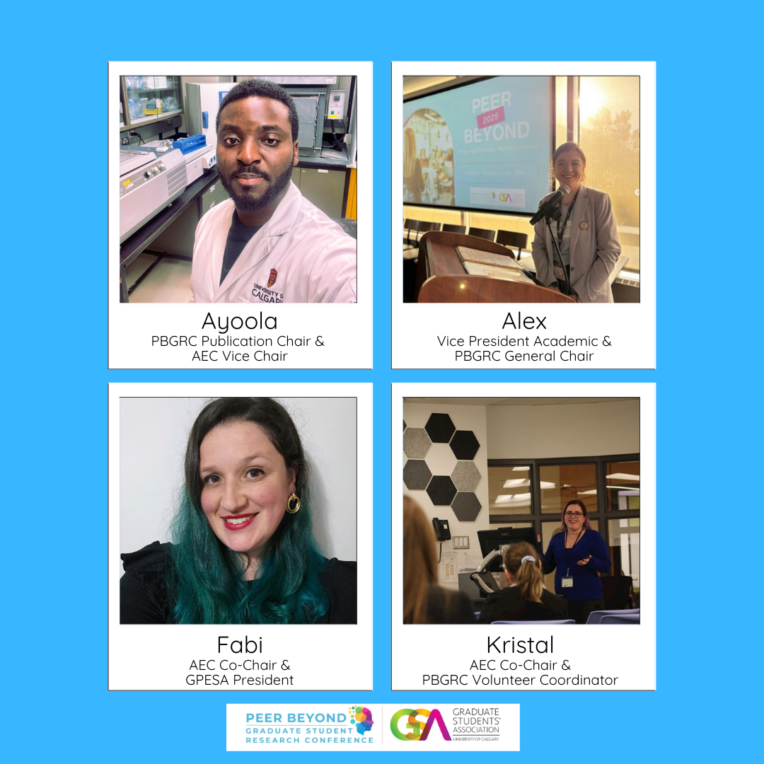 - As Vice President Academic of the Graduate Students' Association and General Chair of the Peer Beyond Graduate Research Conference, Alexandria Poppendorf played a role in fostering academic excellence and supporting graduate researchers across the university. She emphasizes the importance of interdisciplinary dialogue and intellectual growth for UCalgary Graduate Students.